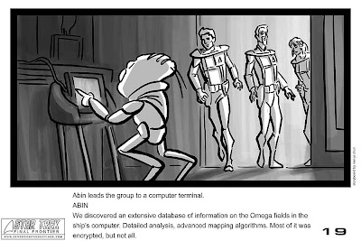 These storyboards were based on the "Star Trek: Final Frontier" animated series concept created by Zero Room Productions. For more information, scripts and art galleries, visit their website here:
